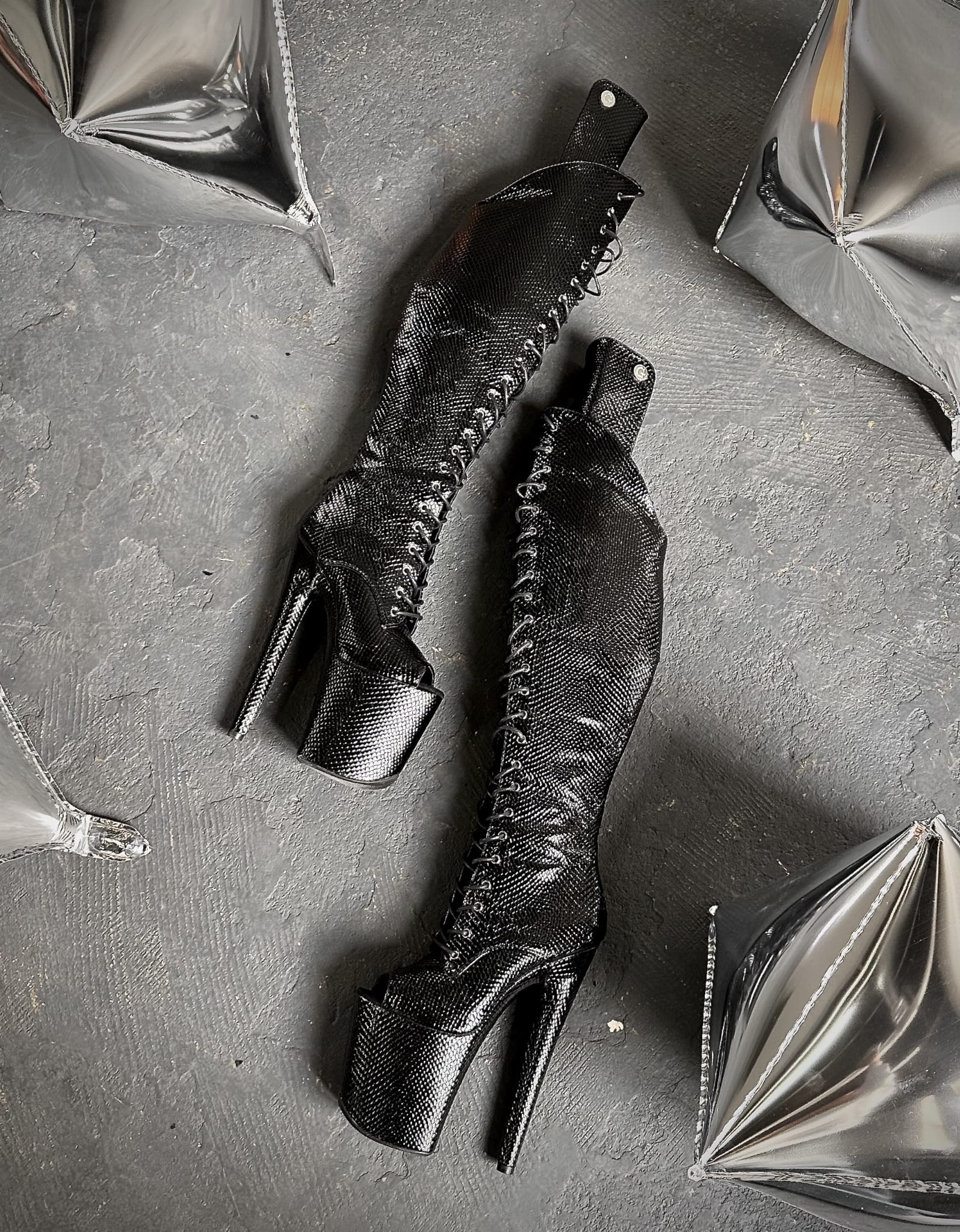 Kozaki z przodu zakrywają kolano, natomiast pod kolanem noga jest odkryta, co daje nam dużą swobodę podczas tańca oraz umożliwia nam to dodatkowo robienie tricków na rurce.