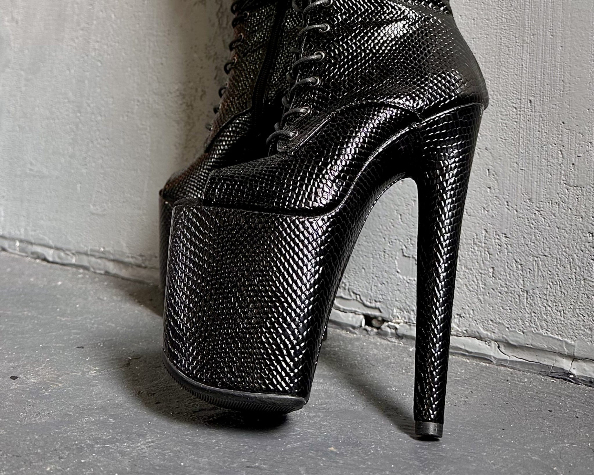 Wysokość obcasa to 20cm.