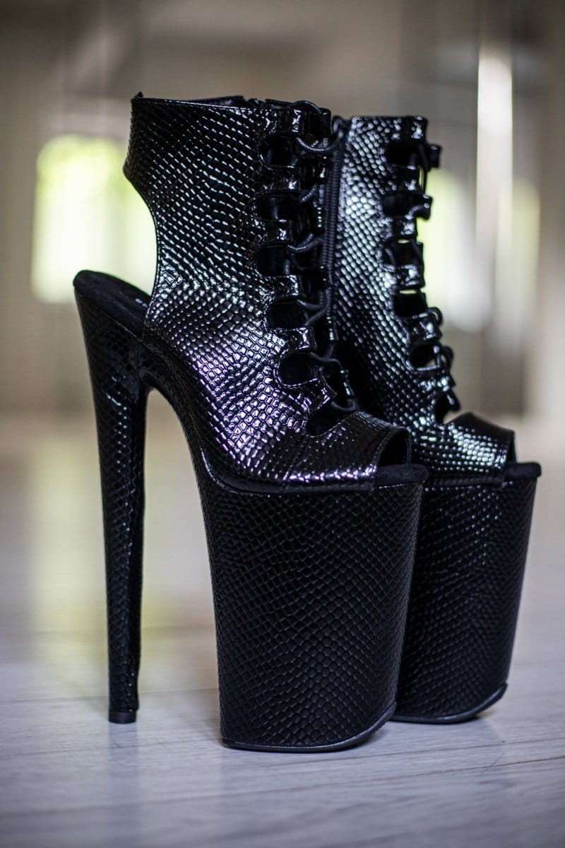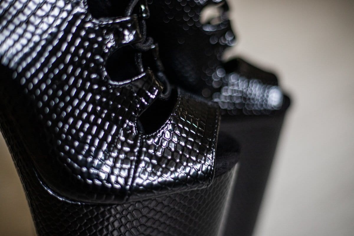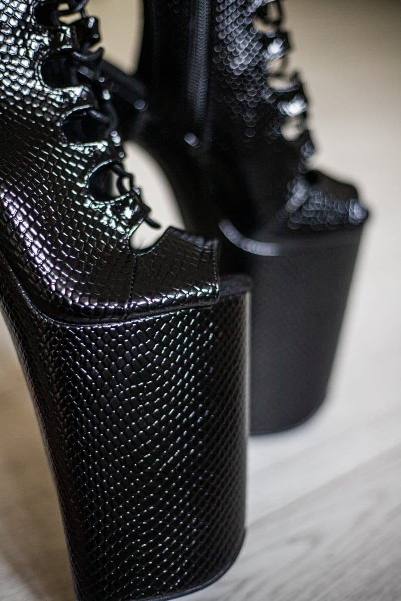 Sandałki wykonane z lakierowanej eco skóry imitującej skórę krokodyla/węża.